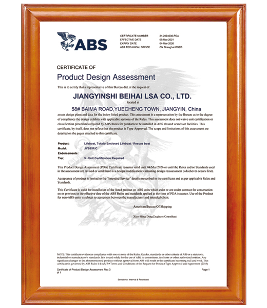 江陰市北海救生設(shè)備有限公司是一家專注于高性能船艇,救生/救助艇,水面無(wú)人艇,和收放裝置的設(shè)計(jì)、研發(fā)、生產(chǎn)、銷售及服務(wù)的有限公司;公司具有一級(jí)Ⅱ類纖維增強(qiáng)塑料船舶生產(chǎn)資質(zhì),二級(jí)鋁質(zhì)船舶生產(chǎn)企業(yè)資質(zhì)和三級(jí)Ⅱ類鋼質(zhì)船舶生產(chǎn)資質(zhì)。
